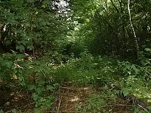 ![]() Old railway line still in place near Pipe Gate station, September 2007 | |