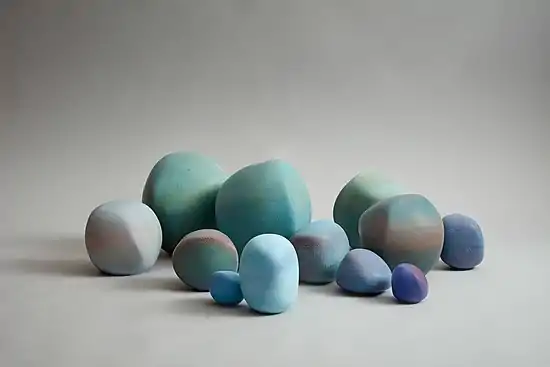 Another feature of Drysdale's later oeuvre are her assemblages of asymmetrical pieces, suites of closed forms that echo geological features of Australia, such as the Devils Marbles series, inspired by the Karlu Karlu / Devils Marbles Conservation Reserve in the Northern Territory.[18]