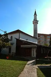 The Pirinaz Mosque (Albanian: Xhamia e Pirinazit) is a mosque located in Pristina, Kosovo.[1] It was built in the second half of the 16th century and was founded by Piri Nazir[2] who served as Vezir under two Ottoman Sultans.[3][4] The Pirinaz Mosque is made of the same stone as the Imperial Mosque but its construction began 100 years later.[5] This mosque represents an important cultural value, which is further increased by the belief that Prince Lazar's remains were buried on the location of today's Pirinaz Mosque with the permission of Sultan Bayezid, son and successor of Murat, who died in the Battle of Kosovo in 1389. Later on, Lazar's remains were moved to Ravanica Monastery in Serbia. Furthermore, the local legend has it that "Stone of Lazar" located in the garden of Pirinaz Mosque was used to behead Prince Lazar. However, the real circumstances encompassing Lazar's death, remain unknown.