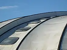 The roofs were 6 m tall and opened 120° hence the sunflower name, which, weather permitting, allowed the pools to function as semi-outdoor pools particularly in summer.