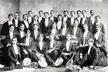 The University of Pittsburgh Men's Glee Club (also known as the Pitt Men's Glee Club or PMGC) is an internationally recognized men's choir of students at the University of Pittsburgh and is the oldest nonathletic extracurricular group at the University.[1] Founded in 1890 by John L. High, the Glee Club performs at the First Baptist Church of Pittsburgh and normally goes on a concert tour each year, with an international tour every 3rd year.[2] Recently, the Glee Club has performed in areas such as Texas, Philadelphia, New York City, Belgium, France, and a recent 125th anniversary tour of Italy in the spring of 2015.