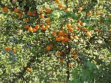 The 1889 book 'The Useful Native Plants of Australia records that common names included "Native Orange" and "Orange Thorn" and that "The fruit is an orange berry with a leathery skin, about one inch and a half in diameter. The seeds are large. It is eaten by the aboriginals [sic.]."[2]