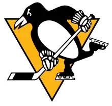 A contest was held where 700 of 26,000 entries picked "Penguins" as the team's nickname, sharing its nickname with the athletic department of the newly named Youngstown State University in nearby Youngstown, Ohio. (Youngstown is part of the Penguins' territorial rights to this day, though they did briefly share them with the Cleveland Barons in the mid-1970s.) Mark Peters had the winning entry (which was inspired because the team was to play in the "Igloo", the nickname of the Pittsburgh Civic Arena),[6][7] a logo was chosen that had a penguin in front of a triangle, which symbolized the "Golden Triangle" of downtown Pittsburgh.[6][8] The Penguins' first general manager, Jack Riley, opened the first pre-season camp for the franchise in Brantford, Ontario,[9] on September 13, 1967, playing the franchise's first exhibition match in Brantford against the Philadelphia Flyers on September 23, 1967. Restrictive rules which kept most major talent with the existing "Original Six" teams hampered the Pens, along with the rest of the expansion teams. Beyond aging sniper Andy Bathgate, all-star defenseman Leo Boivin (who had begun his professional career with the Hornets) and New York Rangers' veteran Earl Ingarfield, a cast of former minor leaguers largely manned the first Penguins' team. Several players played for the Hornets the previous season: Bathgate, wingers Val Fonteyne and Ab McDonald, and goaltenders Hank Bassen and Joe Daley. George Sullivan was named the head coach for the club's first two seasons, and McDonald was named the team's first captain.[10]