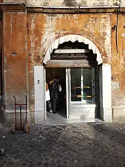 In addition to being prepared in families for the feast of circumcision, pizza di Beridde is sold by kosher bakeries like the Pasticceria Boccione in the Ghetto of Rome (in Sant'Angelo rione),[3][7] along with other traditional Jewish sweets, such as ricotta and sour cherry tart and mostaccioli.[10]