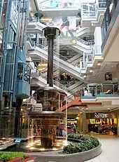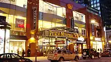 Place Montreal Trust is a shopping mall in Montreal, Quebec, Canada, located west of the Eaton Centre, at the corner of Saint Catherine Street and McGill College Avenue in the city's downtown core. With over 320,000 square feet (29,729 m2) of stores and services, Place Montreal Trust attracts 14 million visitors each year. Its indoor water fountain has the highest water spout in North America at 30 metres in height.[1] Place Montreal Trust is linked to the Underground City of Montreal.
