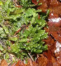 Plagiochila is a large, common, and widespread genus of liverworts in the order Jungermanniales.[1] It is a member of the family Plagiochilaceae within that order. There may be anywhere from 500 to 1300 species, most of them from the tropics; the exact number is still under revision. The genus also has a wide distribution in temperate and arctic areas.
