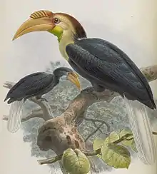 The plain-pouched hornbill (Rhyticeros subruficollis) is a species of hornbill in the family Bucerotidae. It is found in forests of the Dawna Range and the Tenasserim Hills of southern Myanmar, adjacent parts of western Thailand and northern Peninsular Malaysia.