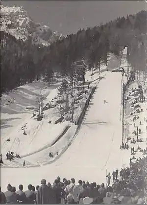 On 8 March 1953, international competition with 38 competitors from Yugoslavia, Austria, France, West Germany, Switzerland and Italy on K80 normal hill was on schedule. Hermann Anwander won.[4]