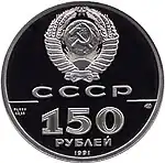 | 1991 | 150 rubles | Proof | 999/1000 | 15.57 | 28.6 | 16,000 | ||