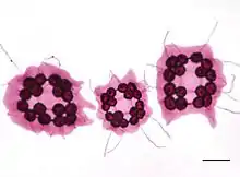 Platydorina is a genus of microscopic green algae in the family Volvocaceae.[1] It contains only one species, Platydorina caudata.[2] It was described by Charles Atwood Kofoid in 1899.[3]