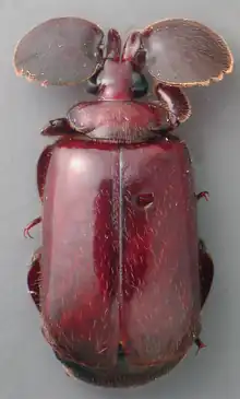 Platyrhopalopsis is a genus of flanged-bombardier beetles in the family Carabidae. They are found, as in others of the group, within ant nests, in the Indo-Malayan region. Adults are rarely seen except at lights. The flat terminal segment of the antenna is thought, based on studies of pupal development, to be formed by the fusion of multiple antennomere segments.[1] The genus, placed by some in the tribe Platyrhopalina,[2] includes the following three species:[3][4]