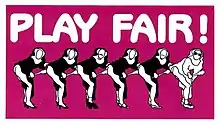 Play Fair! was a landmark brochure produced by the San Francisco Order of the Sisters of Perpetual Indulgence produced what was to become a landmark document in the emerging AIDS crisis.[1] Play Fair! was one of the first safer sex material written by and for gay men. One of the authors of the publication was public health nurse and AIDS activist Bobbi Campbell (a.k.a. Sister Florence Nightmare) would go on to appear on the cover of the August 8, 1983, issue of Newsweek.[2]