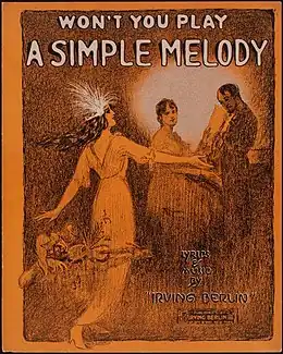 "Play a Simple Melody" is a song from the 1914 musical, Watch Your Step, with words and music by Irving Berlin. The show was the first stage musical that Berlin wrote. It ran for 175 performances at the New Amsterdam Theater in New York City. The one song from the show that is well-remembered today is "Play a Simple Melody," one of the few true examples of counterpoint in American popular music — a melody running against a second melody, each with independent lyrics. In the printed music, first the "simple melody" plays alone. Then comes the contrasting melody. Finally, the two play together.[1] The lyrics of "Play a Simple Melody" also track the counterpoint duet in that one singer yearns for the music which mother sang (the style of a bygone generation), but the other singer disdains such classic fare as lacking interest and rhythm. When "Play a Simple Melody" was published, ragtime was in its heyday, led by its most consummate composer, Scott Joplin. In a famous 1916 recording of the song,[2] while Elsie Baker (using her stage name "Edna Brown") wants what she considers simplicity, Billy Murray explicitly asks for "rag". The song was also recorded by Walter Van Brunt and Mary Carson in 1915.[3]