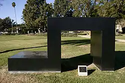 Playground is a public artwork by American artist Tony Smith, located at Beverly Gardens Park in Beverly Hills, California. It is a welded steel sculpture surfaced with black paint. The sculpture was conceived in 1962 and cast in 2003. Situated on the edge of Beverly Gardens Park and visible from the street, this sculpture is mounted on an approximately 4” tall concrete platform. It measures 5’ 4” height x 10’ 8” width x 5’ 4” depth (163 x 325 x 163 cm).