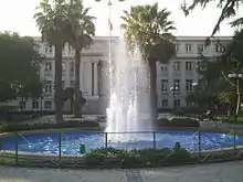 The neighborhood development began with adjacent lots along Irarrázaval Avenue. The large palm trees on the southern side of the avenue make the plaza visually appealing. When the trolleys started passing through and small shops began to appear, activity intensified in the sector. Plaza Ñuñoa became important at the end of the 1960s, with increased urbanification of the side of the city nearer to the mountains.[4][5] In carrying out a study about social psychology, memory, and spatiality in Santiago, Chile scholars focused on Plaza Ñuñoa.[6]