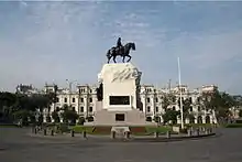 The Plaza San Martín is one of the most representative public spaces of the city of Lima, Peru. It is located at the ninth block of Colmena avenue, within the Historic Centre of Lima which was declared a World Heritage Site in 1988 by UNESCO. It is located near the Plaza Mayor of Lima and is connected to it by the Jiron de la Union. Its central monument gives homage to Peru's liberator, José de San Martín.