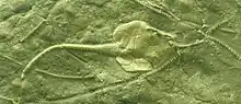 Pleurocystites (meaning rib bag or side bladder) is a genus of rhombiferan echinoderm (a cystoid) that lived in the Late Ordovician. Its fossils are known from Europe and North America. Pleurocystites grew to a height of 2 centimeters (3/4 of an inch) and fed on plankton.