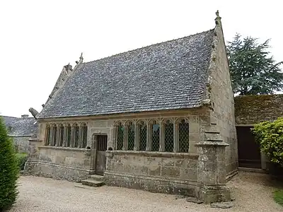 The building has arcaded windows,"trilobées" and dates to the beginning of the 16th century. The relics and bones held in the building were removed in 1884. At that time it was recorded that over 400 skulls were moved, many in "skull boxes" which recorded the deceased's name, age and date of death.[5]