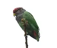 The plum-crowned parrot's taxonomy has not been settled. The International Ornithological Committee and BirdLife International's Handbook of the Birds of the World consider it to be a full species.[3][4] The South American Classification Committee of the American Ornithological Society (SACC) and the Clements taxonomy treat it and the white-capped parrot (P. seniloides) as subspecies of the speckle-faced parrot under the binomial P. tumultuosus.[5][6] The SACC declined to split the speckle-faced in 2005 but recognizes that a 2007 study suggests that the split is valid.[7][8][5]