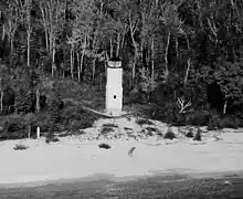 A lighthouse was first built on Plum Island in 1849, but was abandoned in 1858 and the light moved to nearby Pilot Island.[7]