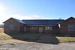 The school is a single-story frame building with a brick veneer.[2] Architecturally, it is an example of a Craftsman-influenced design.[3] The original portion of the school building has an H-shaped layout. Its design was based on a standardized plan for a four-teacher school that was in widespread use in Tennessee and other parts of the southern United States in the 1920s. It is similar to both the Rosenwald school four-teacher school design of that period and Plan No. 4 in the Tennessee Department of Education's 1928 Rural School Building Plans. This design provided for four classrooms, an auditorium, and a room designed to serve as both a library and a principal’s office. Pocahontas School was one of several similar four-teacher schools built in Hardeman County in the 1920s; it is believed to the only one that is still standing.[2]