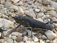 Poekilocerus is a genus of grasshoppers in the family Pyrgomorphidae and the monotypic tribe Poekilocerini. Species are found in the northern half of Africa, and in Southwest and South Asia, often in arid or semi-arid areas.[2][3][4]