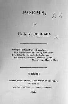 Poems, by H.L.V. Derozio is a book of poetry by Henry Louis Vivian Derozio, first published in Calcutta in 1827.