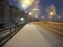 In the early 1990s the street was widened by land reclamation, creating a wide foot and bicycle traffic way right at the coastline. Nowadays the proper traffic way is at the centre of the street while a separate traffic way is located at its western edge separated by a row of trees, use of which is only allowed for traffic leading to the buildings on the edge of the street and their parking lots.