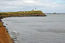 A lighthouse was first erected at Point Aconi in 1874. The last lighthouse, a glass fibre tower standing 11 metres (36 ft) tall, was erected in 1989. It was destroyed by fire in 2014.[4]