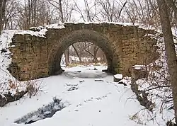 The Point Douglas–St. Louis River Road Bridge, built in 1865,[2] is the second oldest known stone arch bridge in the state of Minnesota after Sibley's Ferry Bridge in Mendota, which was built in 1864.[3] It was constructed in Stillwater Township to carry the Point Douglas to Superior Military Road over Brown's Creek. The bridge was listed on the National Register of Historic Places in 1975 for having local significance in the themes of engineering and transportation.[4] It was nominated as an example of stone engineering and as a remnant of Minnesota's early government roads.[5]