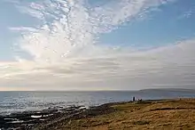 Point of Ayre is a headland in the parish of Deerness, in the East Mainland of Orkney, Scotland. Overlooking the Copinsay Pass, it lies 4 miles (6 km) south of Mull Head,[1] and around 10 miles from Kirkwall, the main town on the island.[2]