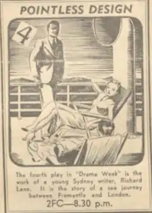 Pointless Design is a 1938 Australian radio play by Richard Lane. It was Lane's first notable radio work although his second one produced (after The Man was Blind). It was inspired by Lane's travels to Europe.[1][2]