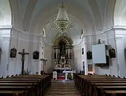 The local parish church is dedicated to Our Lady of Lourdes and belongs to the Roman Catholic Archdiocese of Ljubljana. It was designed by Franc Avsec[4] and built in 1904 with an octagonal nave.[6] A second church, built on Glinjek Hill (828 m) south of the main settlement, belongs to the same parish. It is dedicated to Saint George (Slovene: sveti Jurij) and originally dates to the 13th century. It was restyled in the 19th century, but retains some of its original features.[7]