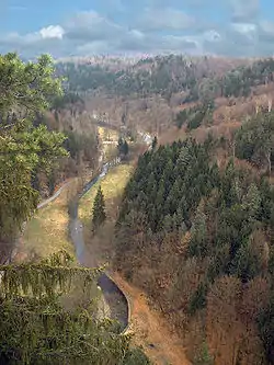 The Polenz is the right-hand, smaller headstream of the Lachsbach in the German state of Saxony. Its lower course flows through the western Elbe Sandstone Mountains in a canyon-like valley.