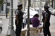 Policia Municipal de Ponce on patrol at Plaza Las Delicias