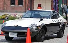 When the expressway system opened, sports cars also has been adopted as base cars for police cars. The Nissan Fairlady Z and the Toyo Kogyo (Later Mazda) Cosmo Sports, etc., were involved in speed control on expressways. In urban areas where illegal parking has begun to become a problem, light vehicle-based "kei-car" police cars, commonly known as "ミニパト (Hepburn: mini-pato)",[8] begun to play an active role. The base cars included the Suzuki Fronte and the Daihatsu Fellow Max,[4] and they were mainly driven by female police officers (they were called "婦警, Hepburn: fukei" at the time). From the end of the 70's to the 80's, some foreign police cars were revived. The Porsche 911 and BMW 3 series were painted in black and white as marked cars, and Mercedes-Benz vehicles including the W124, was deployed as a unmarked police car. The most notable and famous of these is probably the Niigata Prefectural Police's 1978 Porsche 911SC.[4] This model, which was deployed when the Hokuriku Expressway opened, has also been used as a PR vehicle for the prefectural police and has been in use for over 20 years, which is very unusual for police cars.