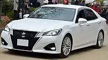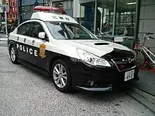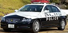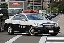 Police Vehicles in Japan are vehicles used by the prefectural police officers used for patrolling consisting of wide variety of vehicles depending on the environment and situation.[1] Most police vehicles in Japan are manufactured by domestic automakers such as Toyota, Nissan or Subaru. Unlike how some departments in the U.S. and Canada allows their officers to take-home their police vehicles, Japan does not allow the officers to take home any kind of law enforcement vehicle. Every marked police patrol vehicles are in black-and-white two tone livery, motorcycles are usually all white. Vehicles for riot police units are painted blue and white, and especially vehicles for the Rescue Squads of the TMPD are painted green and white. The formal name is "警邏車" (keirasha),[2] but in general the abbreviation "パトカー (Hepburn: patokā)" is widely used.[2]