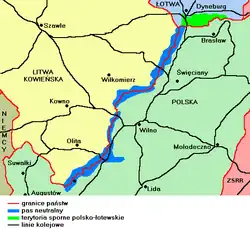 Polish–Lithuanian Neutral Strip[lower-alpha 1] was a demilitarised zone between Lithuania and Republic of Central Lithuania, and later Poland, that was established on 17 December 1920, following the treaty of Kaunas and disestablished on 22 May 1923. It was established by the League of Nations, to stop countries from fighting, following the Central Lithuanian Offensive on Kaunas. The zone was located on the borders of the separated countries between towns of Pabradė and Valkininkai and was, on average, 6 km wide on each side of the border.[1]
