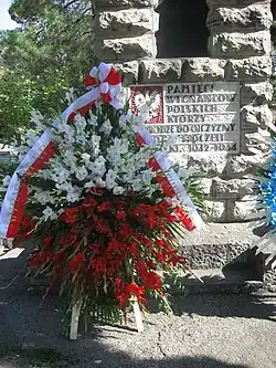 There are two memorials in this cemetery. The first is located in the center of the Polish section, built in honor of the victims of this historic migration, and the other is a stony statue of the Polish White Eagle, with the left of the names of the refugees who drowned in the Caspian Sea, and to the right of it are the names of those buried in the cemeteries of Khorramshahr and Qazvin and in over cemeteries in Iran.[3]
