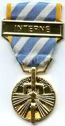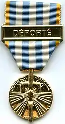 The Political deportation and internment medal (French: Médaille de la déportation et de l'internement politique) is a commemorative medal awarded by the Ministry for veterans and war victims of the French Republic[1] to its citizens who were deported or interned by the German occupation forces during World War II.[2]