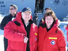 October 10, 2002, saw Collins vote with the majority in favor of the Iraq War Resolution authorizing President George W. Bush to go to war against Iraq.[53] In November 2007, Collins was one of four Republicans to vote for a Democratic proposal of $50 billion that would condition further spending on a timeline for withdrawing troops, mandating that a withdrawal begin 30 days after the bill was enacted as part of goal of removing all US troops in Iraq by December 15, 2008. The bill failed to get the 60 votes needed to overcome a filibuster.[54] In April 2008, Collins and Democrats Ben Nelson and Evan Bayh met with President Bush's advisor on Iraq and Afghanistan Douglas Lute as the three senators expressed support for a prohibition on spending for major reconstruction projects, requiring Iraq to pay for its security forces to be trained and equipped and to reimburse the American military for the estimated $153 million a month the military spent on fueling in combat operations in Iraq. Collins stated after the meeting that while the administration's view was not entirely similar to that of the senators, they at least seemed open to it.[55] In June 2014, while growing violence erupted in Iraq under the leadership of Prime Minister Nouri al-Maliki, Collins stated that the violence would have been slower had a residual NATO force been present in Iraq and that the question was whether air strikes were effective.[56]