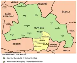 In 2000-2002, the municipality of Novi Sad was divided into two urban municipalities, Novi Sad and Petrovaradin; making the way on the changes of the law in Serbian parliament which says that the city status in Serbia is only possible if the city is divided into two or more urban municipalities. Since then, the law was changed, and the city need not to be divided into urban municipalities.[3]