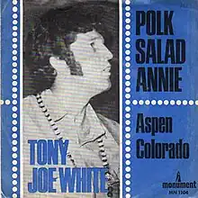 - ↑ "Tony Joe White - Polk Salad Annie". 45cat.com. Retrieved October 25, 2018.