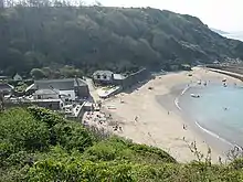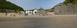 Fishing, essentially a seine fishery for pilchards (Sardina pilchardus), was a mainstay of the village's economy from at least the late 16th century, there being a seine house recorded here in 1590.[3] The village has been part of the Rashleigh family's Menabilly Estate from the late 16th century, and the estate built the half-moon quay in 1775 to help the seine netting company.[3] The seine company was in decline in the 1870s and closed.[3]