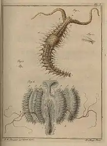 Polydora is a genus of annelid worms.[2] It contains marine polychaete species that live in mud, holes bored in rocks, and holes bored in the shells of shellfish.[3][4]