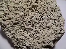 Characteristic double "sunglasses" holes left by Polydora ciliata burrowing in rock.