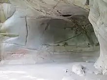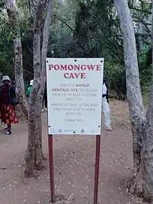 Pomongwe Cave is a cave and rock art site in Zimbabwe, located inside the Matobo National Park, one kilometer east of Maleme Dam. The cave, formed by negative exfoliation, lays the end of a small valley facing northeast. It is 20m long and 20 wide.[1] The name Pomongwe is derived from the Kalanga word for 'melon' referring to the dome shaped hill.[1]