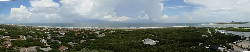 The Ponce de Leon Inlet Light is a lighthouse and museum located at Ponce de León Inlet in Central Florida.[2][3][4][5] At 175 feet (53 m) in height, it is the tallest lighthouse in the state and one of the tallest in the United States (the Cape Hatteras Light in North Carolina is taller at 207 feet (63 m)).[6] It is located between St. Augustine Light and Cape Canaveral Light. Restored by the Ponce de Leon Inlet Lighthouse Preservation Association, the lighthouse became a National Historic Landmark in 1998.[7]
