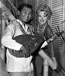Ponce came to national attention in 1959 as the wise-cracking cab driver Kazuo Kim on the Warner Bros. detective series Hawaiian Eye,[7] which ran for four years on ABC. Kazuo Kim was known for his trademark straw hat and ubiquitous ukulele, as a sometimes informant for the detectives,[8] or as he idly plucked the uke while leaning against his cab waiting for a fare. The show's intro showed Kazuo Kim floating in the ocean on an inner tube, wearing the hat and plucking his uke.[9]