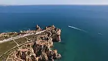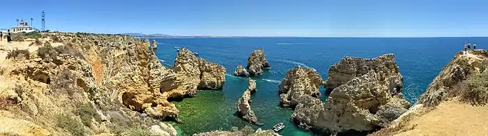 Ponta da Piedade (Portuguese for "point of mercy") is a headland with a group of rock formations along the coastline of the town of Lagos, in the Portuguese region of the Algarve. Consisting of yellow-golden cliff-like rocks up to 20 meters high, they are one of the most famous touristic attractions of Portugal. Several grottos in Ponta da Piedade can be visited by boat. The location also contains a lighthouse, dating back to 1913.